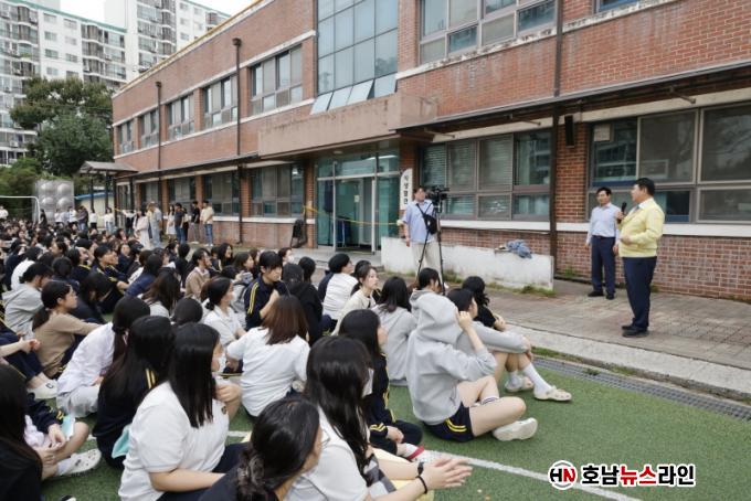 Çлý ¾ÈÀü µîÀ» Á¡°ËÇϱâ À§ÇØ ÇöÀåÀ» ãÀº ÀÌÁ¤¼± ±³À°°¨Àº ¡°Çб³ Æø¹ß¹° ¼³Ä¡ Çù¹ÚÀº ÇлýµéÀÇ »ý¸íÀ» À§ÇùÇÏ´Â ¸Å¿ì Áß´ëÇÑ »ç¾È¡±À̶ó¸ç ¡°±ä±Þ »óȲÀÌ ¹ß»ýÇÒ °æ¿ì Çлý ¾ÈÀüÀ» ÃÖ¿ì¼±À¸·Î ½Å¼ÓÇϰí ü°èÀûÀ¸·Î ´ëÀÀÇÒ ¼ö ÀÖµµ·Ï ÃÖ¼±À» ´ÙÇϰڴ١±°í ¸»Çß´Ù.