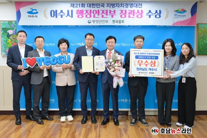[È£³²´º½º¶óÀÎ = À̺´¸¸ ±âÀÚ] ¿©¼ö½Ã(½ÃÀå Á¤±â¸í)°¡ ÇàÁ¤¾ÈÀüºÎ¿Í Çѱ¹ÀϺ¸°¡ °øµ¿À¸·Î ÁÖÃÖÇÑ ¡®Á¦21ȸ ´ëÇѹα¹ Áö¹æÀÚÄ¡°æ¿µ´ëÀü¡¯¿¡¼­ ¡®Áö¹æ¹°°¡ ¾ÈÁ¤ ºÐ¾ß¡¯ ¿ì¼ö±â°üÀ¸·Î ¼±Á¤µÅ ÇàÁ¤¾ÈÀüºÎÀå°ü ǥâÀ» ¼ö»óÇß´Ù.