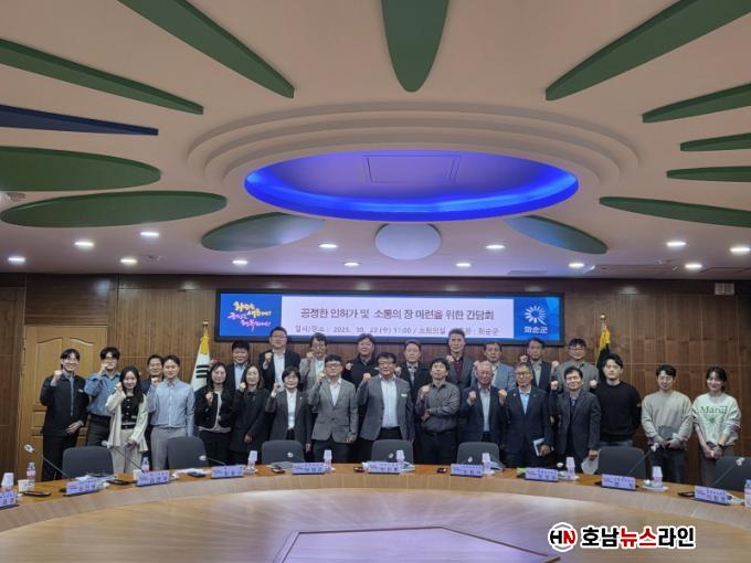 [È£³²´º½º¶óÀÎ = ¼­ÀºÈ« ±âÀÚ] È­¼ø±º(±º¼ö ±¸º¹±Ô)Àº ±ºÃ» ¼ÒȸÀǽǿ¡¼­ °ü³» °ÇÃà»ç ¹× °ü°èÀÚµé°ú °£´ãȸ¸¦ ¿­¾î, ½Å¼ÓÇÏ°í °øÁ¤ÇÑ ÀÎÇã°¡ ÀýÂ÷¸¦ À§ÇÑ Çù·Â ¹æ¾È°ú ¹Î°£°úÀÇ ¿øÈ°ÇÑ ¼ÒÅë °­È­¸¦ À§ÇÑ ¹æ¾ÈÀ» ³íÀÇÇÏ¿´´Ù°í 22ÀÏ ¹àÇû´Ù.