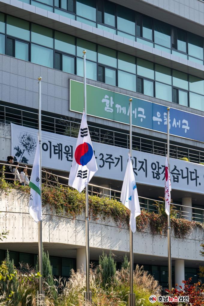 [È£³²´º½º¶óÀÎ = ¼ÀºÈ« ±âÀÚ] ±¤ÁÖ ¼±¸(±¸Ã»Àå ±èÀ̰)´Â 29ÀÏ 10¡¤29 ÀÌÅ¿ø Âü»ç 3Áֱ⸦ ¸Â¾Æ Èñ»ýÀÚµéÀ» ±â¸®°í ¾ÈÀüÇÑ »çȸ¸¦ ±â¿øÇÏ´Â Ã߸ð Çö¼ö¸·°ú Á¶±â¸¦ °Ô¾çÇß´Ù.