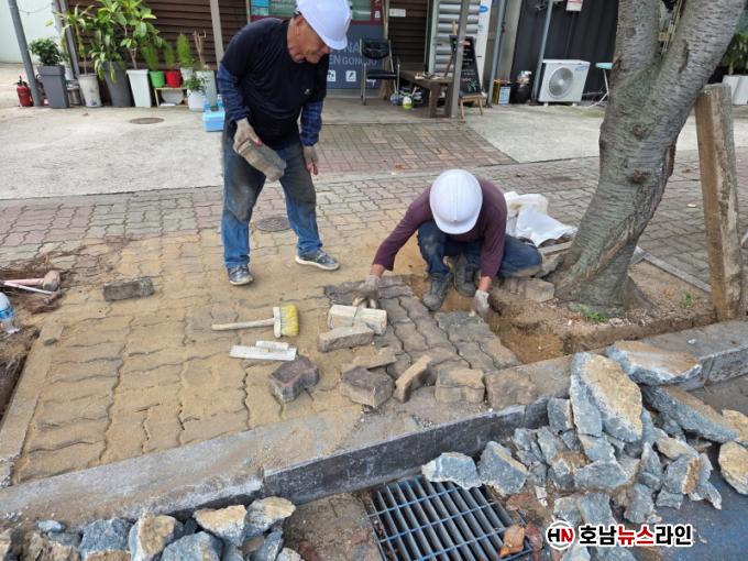 ÀÌ¿¡ ±ºÀº º¸µµºí·Ï ¹× Àεµ Æ÷Àå ÆÄ¼Õ ±¸°£¿¡ ´ëÇÑ ¼ö½Ã Á¡°Ë°ú ½Å¼ÓÇÑ º¸¼ö ÀÛ¾÷À» ÃßÁøÇϰí ÀÖ´Ù. °¡·Î¼ö »Ñ¸®·Î ÀÎÇÑ º¸µµ º¯Çü ±¸°£Àº »Ñ¸® Àý´Ü°ú º¸µµ ÆòÅºÈ ÀÛ¾÷À» º´ÇàÇØ º¸Çà ¾ÈÀüÀ» È®º¸ÇÒ °èȹÀÌ´Ù.