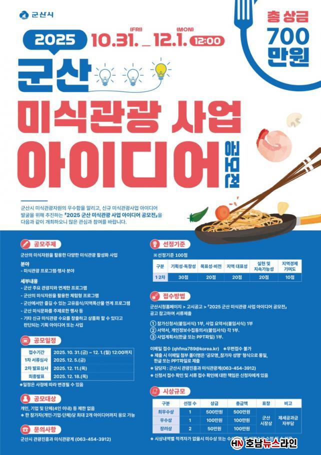 ±º»ê½Ã °ü°èÀÚ´Â ¡°À̹ø °ø¸ðÀüÀ» ÅëÇØ ±º»êÀÇ ¸À°ú °ü±¤À» °áÇÕÇÑ Âü½ÅÇÑ ¾ÆÀ̵ð¾î°¡ ¹ß±¼µÇ¾î, Áö¿ª°æÁ¦ Ȱ¼ºÈ¿Í ¹Ì½Ä°ü±¤µµ½Ã ±º»êÀÇ ºê·£µå °¡Ä¡ Á¦°í¿¡ Å« µµ¿òÀÌ µÇ±æ ±â´ëÇÑ´Ù.¡±¶ó°í ¹àÇû´Ù. ±âŸ ÀÚ¼¼ÇÑ »çÇ×Àº ±º»ê½Ãû ´©¸®Áý °í½Ã¡¤°ø°í¿¡¼ È®ÀÎÇÒ ¼ö ÀÖÀ¸¸ç, ½ÅûÀº À̸ÞÀÏ(qhfma789@korea.kr)À» ÅëÇØ Á¢¼öÇÏ¸é µÈ´Ù.