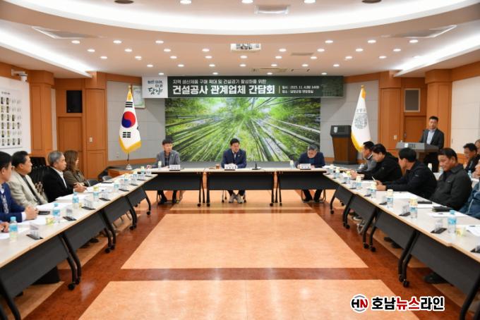 À̹ø °£´ãȸ´Â Áö¿ª °Ç¼³¾÷ü Âü¿© È®´ë¿Í Áö¿ª»ý»êǰ ±¸¸Å ÃËÁøÀ» À§ÇØ ¸¶·ÃµÈ ÀÚ¸®·Î, ±º °ü°èÀÚ¿Í ³ó¾î¾÷Åä¸ñºÐ¾ß ¼³°è»ç, ³ó°ø¡¤»ê¾÷´ÜÁö ´ëÇ¥´Ü, Àü¹®°Ç¼³¾÷Çùȸ ȸ¿ø»ç ´ëÇ¥ µî 38¸íÀÌ Âü¼®Çß´Ù.