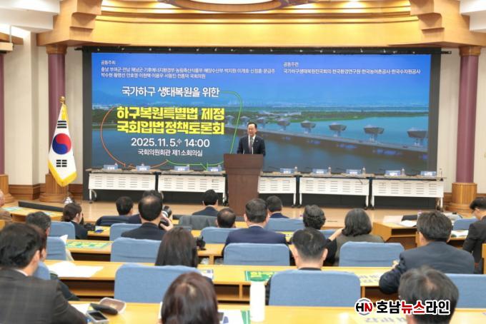 Âü¼®ÀÚµéÀº ÇÏ±ÂµÏ °Ç¼³ ÀÌÈÄ »ý°Ü³ °°ú ¹Ù´ÙÀÇ ¼øÈ¯ ´ÜÀý·Î ´©ÀûµÈ ¼öÁú¿À¿°°ú »ý¹°´Ù¾ç¼º ÈѼÕ, ¿¬¾È½ÀÁö ȲÆóÈ µî º¹ÇÕ ¹®Á¦¸¦ ÇØ°áÇϱâ À§ÇØ Á¶¼ÓÇÑ Çϱ¸º¹¿øÆ¯º°¹ý Á¦Á¤°ú ¾ÈÁ¤Àû Àç¿ø È®º¸, ÀÌÇØ°ü°èÀÚ Âü¿©¿¡ ±â¹ÝÇÑ °Å¹ö³Í½º ±¸ÃàÀÌ ÇÊ¿äÇÏ´Ù´Â µ¥ ÀǰßÀ» ¸ð¾Ò´Ù.