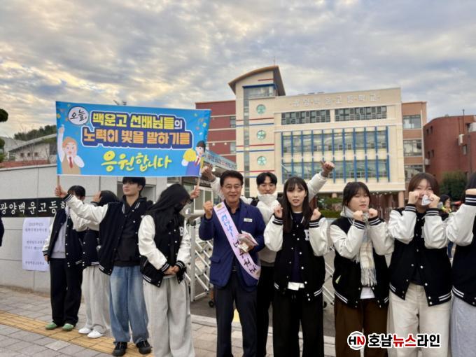 ±èÅÂ±Õ ÀÇÀåÀº ±¤¾ç±³À°Áö¿øÃ» °ü°èÀÚµé°ú ÇÔ²² ±³¹® ¾Õ¿¡¼ ¼öÇè»ýµéÀ» ÀÀ¿øÇϱâ À§ÇØ ÇÔ²² ³ª¿Â Çкθðµé°ú Çб³ °ü°èÀڵ鵵 °Ý·ÁÇß´Ù. ¾Æ¿ï·¯ ¡°Ã»³âÀÌ Èñ¸ÁÀ» ÀÒÁö ¾Ê´Â »çȸ, ³ë·ÂÇÏ´Â ÇлýµéÀÌ °øÁ¤ÇÏ°Ô Æò°¡¹Þ´Â »çȸ¸¦ ¸¸µé±â À§ÇØ Àü³²µµÀÇȸ Â÷¿ø¿¡¼µµ ±³À° Áö¿ø°ú ȯ°æ °³¼±¿¡ ÃÖ¼±À» ´ÙÇϰڴ١±°í °Á¶Çß´Ù.