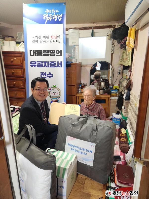À̹ø Áõ¼ ¼ö¿©ÀÚ´Â ±Ý³âµµ ±¤º¹Àý °è±â ±¹³»Ç×ÀÏ °ø·Î¸¦ ÀÎÁ¤¹Þ¾Æ µ¶¸³À¯°øÀÚ ´ëÅë·Éǥâ ¼ÈÆÀ» ¹ÞÀº ͺ º¯ÀοÁ ¾Ö±¹Áö»ç´ÔÀÇ ÀÚ³à·Î, °í·ÉÀÇ À¯Á·(94¼¼) ÀÚÅÃÀ» ¹æ¹®ÇÏ¿© Áõ¼¿Í µ¶¸³À¯°øÀÚÀÇ Áý ¸íÆÐ¸¦ ÇÔ²² Àü´ÞÇÏ¿´´Ù.
