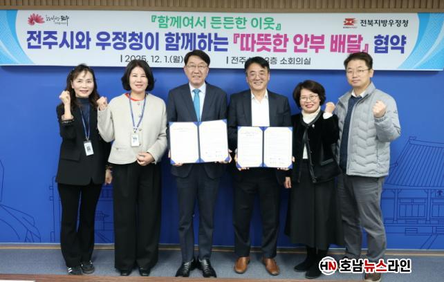ÀüÁÖ½Ã¿Í ÀüºÏÁö¹æ¿ìÁ¤Ã»Àº 1ÀÏ ½Ãû 3Ãþ ¼ÒȸÀǽǿ¡¼ ¿ì¹ü±â ÀüÁÖ½ÃÀå°ú Ãֽ¸¸ ûÀå Á÷¹«´ë¸® µî ¾ç ±â°ü °ü°èÀÚµéÀÌ Âü¼®ÇÑ °¡¿îµ¥ µ¶°Å³ëÀÎ µî Ãë¾à°èÃþ 80¼¼´ë¿¡ ¹ÝÂùÀ» ¹è´ÞÇÏ°í ¾ÈºÎ¸¦ È®ÀÎÇÏ´Â °ÍÀ» °ñÀÚ·Î ÇÑ ¡®µû¶æÇÑ ¾ÈºÎ ¹è´Þ¡¯ ¾÷¹«Çù¾àÀ» ü°áÇß´Ù.