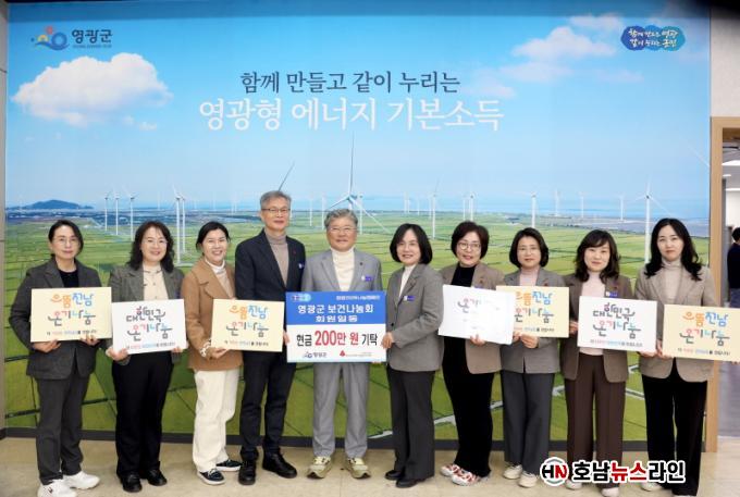 [È£³²´º½º¶óÀÎ = ¼­ÀºÈ« ±âÀÚ] ¿µ±¤±ºÀº 12¿ù 3ÀÏ ¿µ±¤±ºº¸°Ç¼Ò °øÁ÷ÀÚµéÀÇ ºÀ»ç ¸ðÀÓÀÎ º¸°Ç³ª´®È¸(ȸÀå ±è¹ÌÁ¤)°¡¡®Èñ¸Á2026 ³ª´®Ä·ÆäÀΡ¯¿¡ µ¿ÂüÇϱâ À§ÇØ ¼º±Ý 2¹é¸¸ ¿øÀ» ±âŹÇß´Ù°í ¹àÇû´Ù.