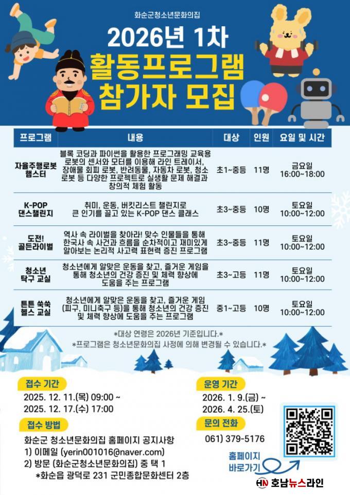û¼Ò³â¹®ÈÀÇÁýÀº ½Ã¼³À» ÀÌ¿ëÇϴ û¼Ò³â°ú ¿î¿µÀ§¿øÈ¸ÀÇ ÀǰßÀ» ¹Ý¿µÇØ ¡ãÀÚÀ²ÁÖÇà·Îº¿ ÇܽºÅÍ ¡ãK-POP ´í½º 縰Áö ¡ãµµÀü! °ñµç ¶óÀ̹ú ¡ãû¼Ò³â ʱ¸ ±³½Ç ¡ãưư ¾¦¾¦ Çコ ±³½Ç 5°³ ÇÁ·Î±×·¥À» 2026³â 1¿ù 9ÀϺÎÅÍ 4¿ù 25ÀϱîÁö ¸ÅÁÖ ÇØ´ç ¿äÀÏ¿¡ ¿î¿µÇÒ ¿¹Á¤ÀÌ´Ù.