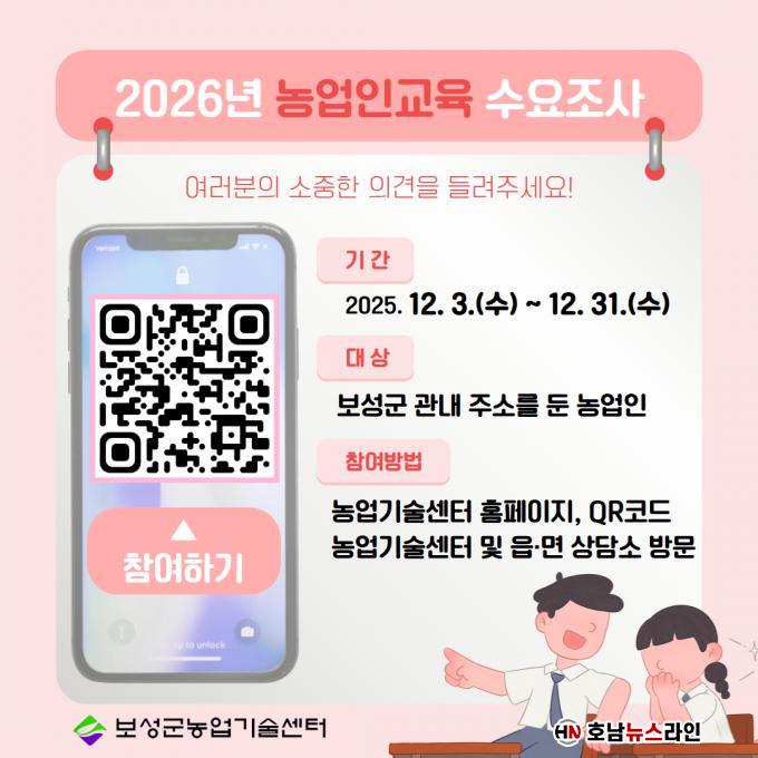 Âü¿© ¹æ½ÄÀº ¿Â¶óÀΰú ¿ÀÇÁ¶óÀÎÀ» º´ÇàÇÏ¿© ÁøÇàµÈ´Ù. ¿Â¶óÀÎ Âü¿©´Â º¸¼º±º³ó¾÷±â¼ú¼¾ÅÍ ´©¸®Áý ¶Ç´Â È«º¸¹°¿¡ Æ÷ÇÔµÈ Á¤º¸¹«´Ì(QRÄÚµå) Á¢¼ÓÀ» ÅëÇØ Âü¿©ÇÒ ¼ö ÀÖÀ¸¸ç, ¿ÀÇÁ¶óÀÎ Âü¿©´Â ³ó¾÷±â¼ú¼¾ÅÍ¿Í À¾¸é ³ó¹Î»ó´ã¼Ò¸¦ ¹æ¹®ÇØ ¼³¹®Áö¸¦ ÀÛ¼ºÇÏ¸é µÈ´Ù.