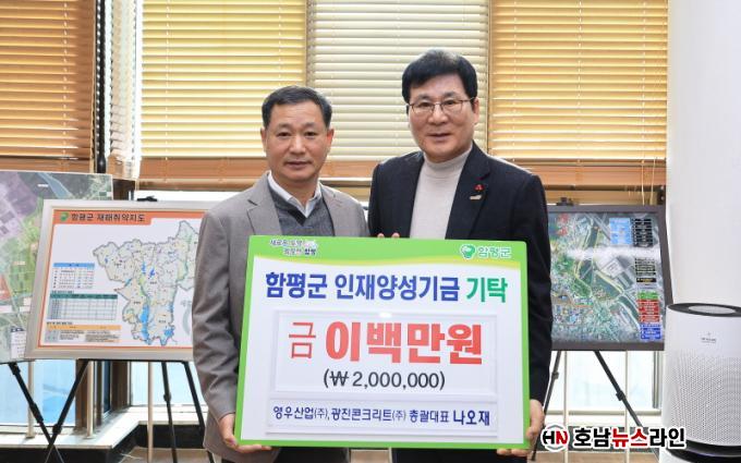 ¿µ¿ì»ê¾÷¢ß¡¤±¤ÁøÄÜÅ©¸®Æ®¢ßÀº °Áø±º¿¡ À§Ä¡ÇÑ ÄÜÅ©¸®Æ® Á¦Á¶¾÷ü·Î, µÎ ±â¾÷ÀÇ ³ª¿ÀÀç ÃѰý´ëÇ¥´Â ÇÔÆò Ãâ½ÅÀ¸·Î °íÇâ ÈĹèµé¿¡°Ô ÈûÀ» ½Ç¾îÁÖ±â À§ÇØ ¸Å³â ÀÎÀç¾ç¼º±â±ÝÀ» ±âŹÇÏ¸ç ³ª´®À» ½ÇõÇϰí ÀÖ´Ù.