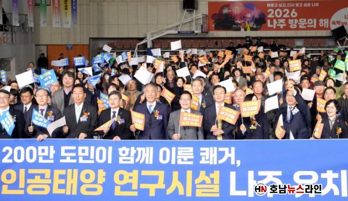 ¡®´ëÇѹα¹ ¿¡³ÊÁö ¼öµµ Àü³² ³ªÁÖ, ÀΰøÅ¾çÀ» ǰ´Ù!¡¯¶ó´Â ½½·Î°Ç ¾Æ·¡ ¿­¸° À̳¯ Çà»ç¿¡´Â °­À§¿ø Àü³²µµ °æÁ¦ºÎÁö»ç, À±º´Å ³ªÁÖ½ÃÀå, ½ÅÁ¤ÈÆ ±¹È¸ÀÇ¿ø, Áö¿ª ´ëÇС¤»ê¾÷°è¡¤¿¬±¸°è Àλç¿Í À¯Ä¡À§¿øÈ¸ À§¿ø, µµ¹Î µî 900¿© ¸íÀÌ Âü¼®Çß´Ù. À̵éÀº ÀΰøÅÂ¾ç ¿¬±¸½Ã¼³ À¯Ä¡ °¨°ÝÀ» ÇÔ²² ³ª´³´Ù. °¡¼ö ÃàÇϰø¿¬ µîµµ À̾îÁ® Çà»ç ºÐÀ§±â¸¦ ´õ¿í ¶ß°Ì°Ô ´Þ±É´Ù.