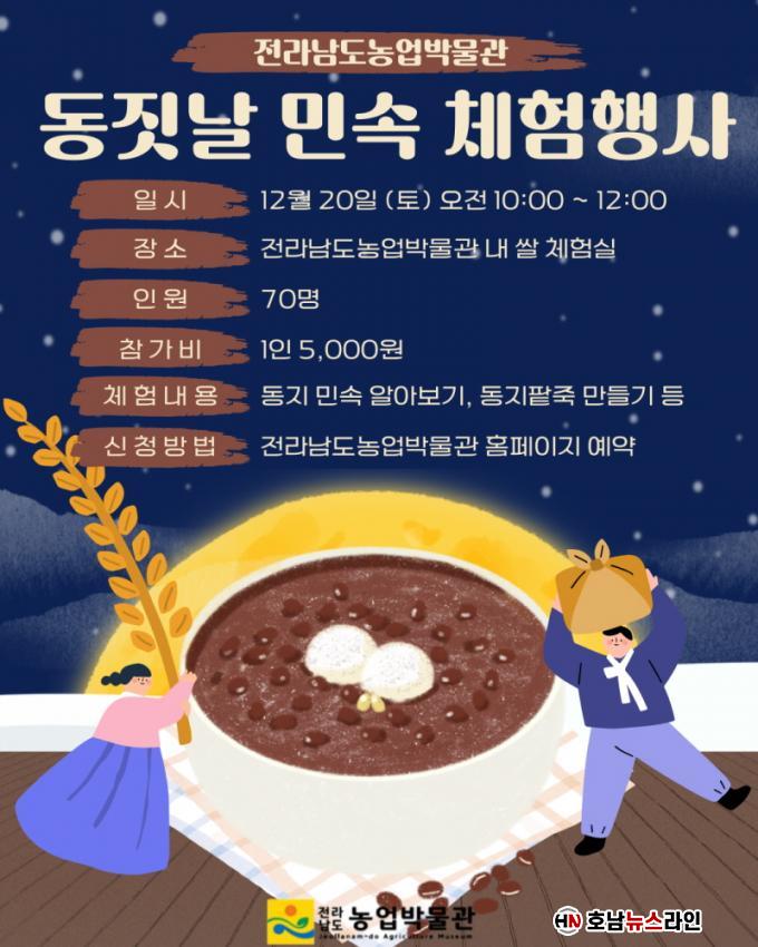 [È£³²´º½º¶óÀÎ = ¼­ÀºÈ« ±âÀÚ] Àü¶ó³²µµ³ó¾÷¹Ú¹°°üÀº ÀØÇô°¡´Â ÀüÅë Àý±â ¹®È­ÀÎ µ¿Áþ³¯ÀÇ Àǹ̸¦ µÇ»õ±â±â À§ÇØ 21ÀÏ ¿ÀÀü 10½ÃºÎÅÍ 12½Ã±îÁö ¹Ú¹°°ü ½Ò üÇè½Ç¿¡¼­ ¡®µ¿Áþ³¯ ¹Î¼Ó üÇèÇà»ç¡¯¸¦ ¿¬´Ù.
