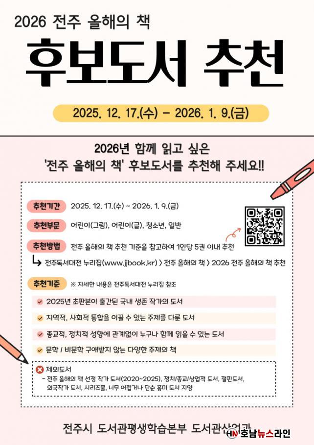 ÀüÁֽô ³»³â 1¿ù 9ÀϱîÁö ¡®2026 ÀüÁÖ ¿ÃÇØÀÇ Ã¥¡¯ È帵µ¼ ½Ã¹Î ÃßõÀ» Á¢¼öÇÑ´Ù°í 19ÀÏ ¹àÇû´Ù.