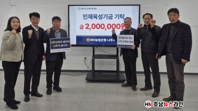 ³ªÁÖ½Ã(½ÃÀå À±º´ÅÂ)´Â NH³óÇùÀºÇà ³ªÁÖ½ÃÁöºÎ°¡ ÀÎÀçÀ°¼º±â±Ý 200¸¸ ¿øÀ» (Àç)³ªÁÖ±³À°ÁøÈïÀç´Ü¿¡ ±âŹÇϸç Áö¿ª ±³À° ¹ßÀü°ú »ó»ý Çù·Â Àǹ̸¦ ´õÇß´Ù°í 19ÀÏ ¹àÇû´Ù.