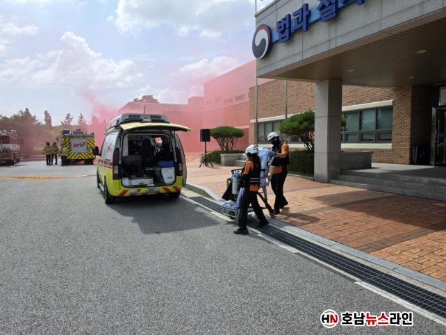 ¿¬½À ±â°£ ½Ã´Â Àü½ÃÁ¾ÇÕ»óȲ½ÇÀ» Áß½ÉÀ¸·Î °ø¹«¿ø ºñ»ó¼ÒÁý, ÃÖÃÊ ¹× ÀÏÀÏ »óȲ º¸°í, Àü½Ã Á÷Á¦ Æí¼º, ±â°ü ¼Ò»ê¡¤À̵¿ ÈÆ·Ã µî ¹ýÁ¤ Çʼö °úÁ¦¸¦ Ãæ½ÇÈ÷ ÀÌÇàÇß´Ù. ƯÈ÷ ºñ»ó¼ÒÁý ¹ß·É ½Ã ÀÀ¼ÒÀ² 100%¸¦ ´Þ¼ºÇÏ¸ç ½ÇÁ¦ À§±â »óȲ¿¡¼µµ Á¶Á÷ Àüü°¡ Áï°¢ ´ëÀÀÇÒ ¼ö ÀÖ´Â ½Å·Ú¼ºÀ» È®ÀÎÇß´Ù. ÈÆ·ÃÀ» ÁÖÀçÇÑ ÀÌÇмö ½ÃÀåÀº ºñ»ó¼ÒÁýºÎÅÍ Àü½Ã Çö¾È °úÁ¦ ÅäÀÇ, µµ»ó¿¬½À(Áöµµ À§ ½Ã¹Ä·¹ÀÌ¼Ç ÈÆ·Ã)±îÁö Àü °úÁ¤À» ÁöÈÖÇϸç ÁöÈÖ¡¤ÅëÁ¦ ±â´ÉÀ» ´ëÆø °ÈÇß´Ù.