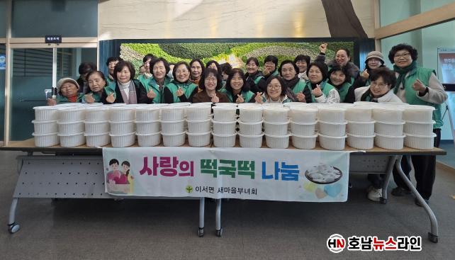 À̼¸é »õ¸¶À»ºÎ³àȸÀå 30¿© ¸íÀÌ Âü¼®ÇÑ °¡¿îµ¥ ºÎ³àȸ°¡ ¸¶·ÃÇÑ ¶±±¹¶± 140Kg¸¦ °ü³» °æ·Î´ç, Ȧ¸ö³ëÀÎ, Àú¼Òµæ °¡±¸ µî 100¿© °¡±¸ ¾î·Á¿î ÀÌ¿ôµé¿¡°Ô Àü´ÞÇß´Ù.