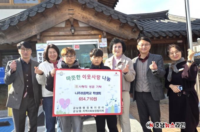 ³ªÁÖÃʵîÇб³ Çлýȸ¿Í Çкθðȸ´Â Áö³ 5ÀÏ ¡®³ªÁÖÃʵîÇб³ ³ª´®ÀåÅÍ¡¯¸¦ ÅëÇØ ¸¶·ÃÇÑ ¼öÀÍ±Ý 65¸¸ 4710¿øÀ» ¾î·Á¿î ÀÌ¿ô¿¡°Ô ÀüÇØ´Þ¶ó¸ç ±Ý³²µ¿¿¡ ±âŹÇß´Ù.