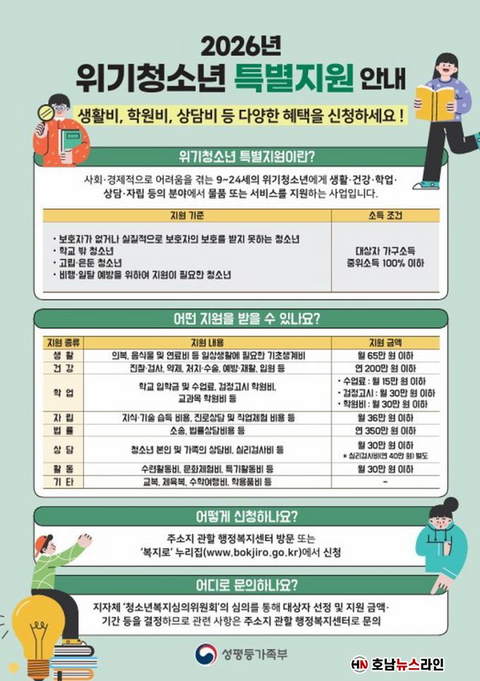 12ÀÏ ºÏ±¸¿¡ µû¸£¸é ¿À´Â 30ÀϱîÁö ¡®À§±â û¼Ò³â Ưº°Áö¿ø»ç¾÷¡¯ ´ë»óÀÚ¸¦ ¸ðÁýÇÑ´Ù. À̹ø »ç¾÷Àº »çȸ․°æÁ¦ÀûÀ¸·Î ¾î·Á¿òÀ» °Þ°í Àִ û¼Ò³â¿¡°Ô ÇÊ¿äÇÑ ¸ÂÃãÇü ¼ºñ½º¸¦ Á¦°øÇÏ¿© À̵éÀÇ ¾ÈÁ¤ÀûÀÎ ÀÚ¸³À» µ½±â À§ÇØ ¸¶·ÃµÆ´Ù.