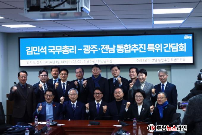 À̹ø °£´ãȸ´Â Àü³²¡¤±¤ÁÖ ÅëÇÕÀÇ Çʿ伺À» ÀçÈ®ÀÎÇϰí, ±è¹Î¼® ±¹¹«ÃѸ®¿Í Àü³²¡¤±¤ÁÖ ±¹È¸ÀÇ¿øÀÌ ÇÔ²² Àü³²¡¤±¤ÁÖ ÅëÇÕ Æ¯º°¹ý Á¦Á¤ÀÇ ¿øÄ¢°ú ¹æÇ⼺, ±Ç¿ªº° ¼÷¿ø»ç¾÷°ú Çö¾È¿¡ ´ëÇØ ÀǰßÀ» ³ª´©±â À§ÇØ ¸¶·ÃµÆ´Ù.