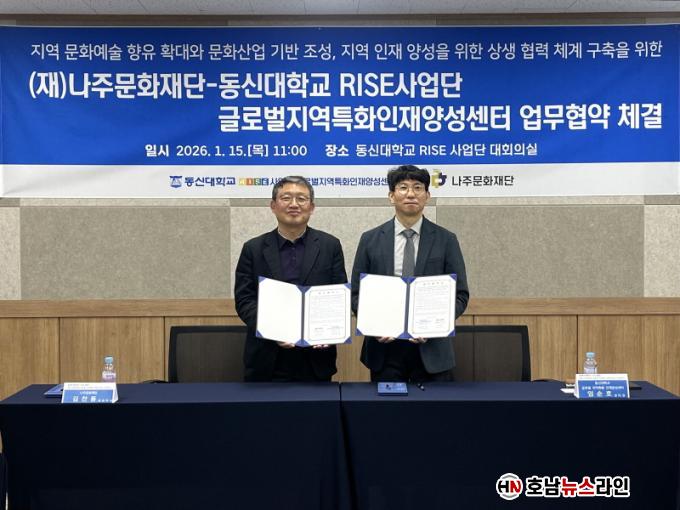 ³ªÁÖ¹®ÈÀç´Ü(ÀÌ»çÀå À±º´ÅÂ)Àº µ¿½Å´ëÇб³ RISE»ç¾÷´Ü ±Û·Î¹úÁö¿ªÆ¯ÈÀÎÀç¾ç¼º¼¾ÅÍ(¼¾ÅÍÀå ÀÓ¼øÈ£)¿Í Áö³ 15ÀÏ Áö¿ª ¹®È¿¹¼ú ÇâÀ¯ È®´ë¿Í ¹®È»ê¾÷ ±â¹Ý Á¶¼º, û³â ÀÎÀç ¾ç¼ºÀ» À§ÇÑ ¾÷¹«Çù¾àÀ» ü°áÇß´Ù°í 16ÀÏ ¹àÇû´Ù.