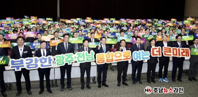 ÇùÀÇȸ À§¿øµéÀº °áÀǹ®À» ÅëÇØ ¡°¿ì¸®´Â Áö±Ý ±¤ÁÖ¿Í Àü³²ÀÌ Çϳª·Î ÈûÀ» ¸ð¾Æ »õ·Î¿î ¹Ì·¡·Î ³ª¾Æ°¡±â À§ÇÑ ¿ª»çÀû ÀüȯÁ¡¿¡ ¼ ÀÖ´Ù.¡±¸é¼ ¡°320¸¸ ½Ã¡¤µµ¹ÎÀÇ ¿¸ÁÀ» ¹Þµé¾î ÇàÁ¤ ÅëÇÕÀÇ ¼º°øÀû ¿Ï¼ö¿Í Ưº°¹ý Á¦Á¤¿¡ ³ª¼ÀÚ.¡±°í ´ÙÁüÇß´Ù.