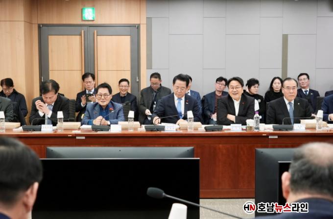 ±¤ÁÖ±¤¿ª½Ã(½ÃÀå °±âÁ¤)¿Í Àü¶ó³²µµ(Áö»ç ±è¿µ·Ï)´Â 21ÀÏ ¿ÀÀü ±¹È¸ÀÇ¿øÈ¸°ü Á¦2¼¼¹Ì³ª½Ç¿¡¼ ¡®±¤ÁÖÀü³² ÅëÇÕ Æ¯º°¹ý °ËÅä ½ÃµµÁö»ç-±¹È¸ÀÇ¿ø 2Â÷ Á¶Âù °£´ãȸ¡¯¸¦ ¿¾î, ¹ý·ü¾ÈÀÇ ½ÇÈ¿¼º°ú ¿Ï¼ºµµ¸¦ ³ôÀ̱â À§ÇÑ ÇÙ½É Æ¯·Ê »çÇ×°ú ÀÔ¹ý Àü·« µîÀ» ³íÀÇÇß´Ù.