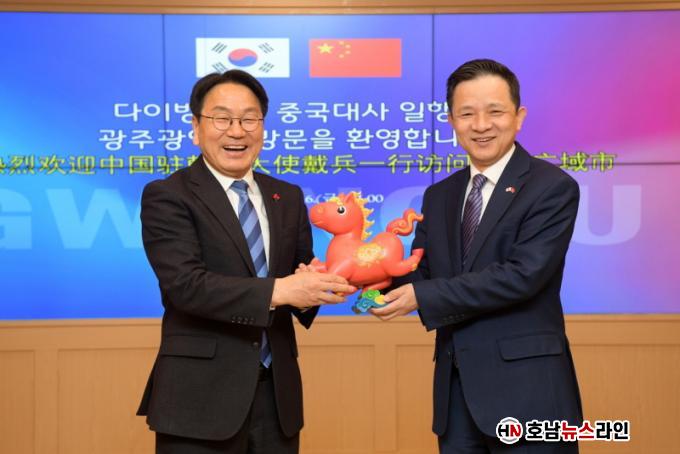 ° ½ÃÀåÀº ¸ÕÀú ¡°¿ÃÇØ´Â ±¤ÁÖ¿Í Áß±¹ ±¤Àú¿ìÀÇ ÀڸŰῬ 30ÁÖ³âÀÌ µÇ´Â ¶æ±íÀº ÇØÀε¥ ±¹¸³5¡¤18¹ÎÁÖ¹¦Áö¸¦ ã¾ÆÁּż °¨»çÇÏ´Ù¡±¸ç ¡°ÀÌÀç¸í ´ëÅë·É°ú ½ÃÁøÇÎ ÁÖ¼®ÀÌ ÇÑÁßÀÇ µ·µ¶ÇÔÀ» º¸¿©ÁØ ¸¸Å À̹ø ¸¸³²ÀÌ ¿ìÈ£±³·ù Çù·ÂÀÇ ÁÁÀº ±âȸ·Î ¹ßÀüÇϱ⸦ Èñ¸ÁÇÑ´Ù¡±°í ¸»Çß´Ù.