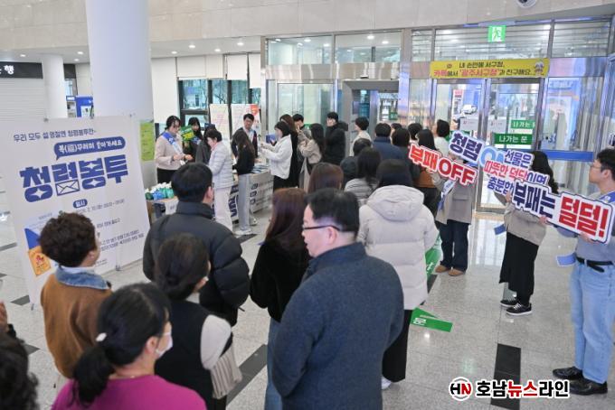 ¼±¸´Â 10ÀÏ ¼±¸Ã» 1Ãþ ·Îºñ¿¡¼ ±Ýǰ¡¤¼±¹° ¼ö¼ö °üÇàÀ» ±ÙÀýÇϰí, °øÁ÷ÀÚÀÇ Ã»·Å ½ÇõÀ» »ýȰ ¼Ó ¹®È·Î Á¤Âø½Ã۱â À§ÇÑ ¡®¾È ÁÖ°í,¾È ¹Þ±â û·ÅºÀÅõ Ä·ÆäÀΡ¯À» ½Ç½ÃÇß´Ù.