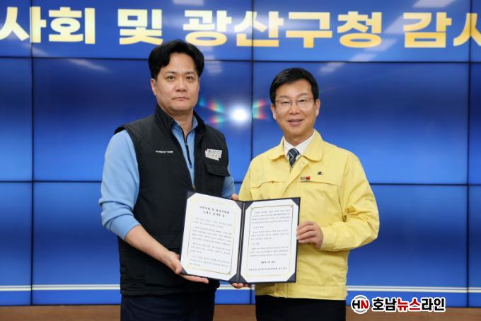 ¹Úº´±Ô ûÀåÀº ¡°°©ÀÛ½º·¯¿î ÈÀç »ç°í¿¡¼ ±¤»ê±¸°¡ Áö۰íÀÚ Çß´ø °ÍÀº ½Ã¹ÎÀÇ ¾ÈÀü, ³ëµ¿ÀÚµéÀÇ »î, Áö¿ª °æÁ¦ÀÇ ÇöÀçÀÌÀÚ ¹Ì·¡¿´´Ù¡±¶ó¸ç ¡°±¤»ê±¸´Â ±ÝȣŸÀ̾îÁöȸ¸¦ ºñ·ÔÇÑ ³ëµ¿ÀÚµéÀÇ ¸ñ¼Ò¸®¿¡ ±Í ±â¿ïÀ̸ç, ±ÝȣŸÀ̾ ¼¼°è ½ÃÀåÀ» ¼±µµÇÏ´Â ±â¾÷, ¾ÈÀüÇϰí Áö¼Ó°¡´ÉÇÑ ÀÏÅÍ·Î °Åµì³ªµµ·Ï Èû²¯ µ½´Â µçµçÇÑ µ¿¹ÝÀÚ°¡ µÇ°Ú´Ù¡±¶ó°í ¹àÇû´Ù