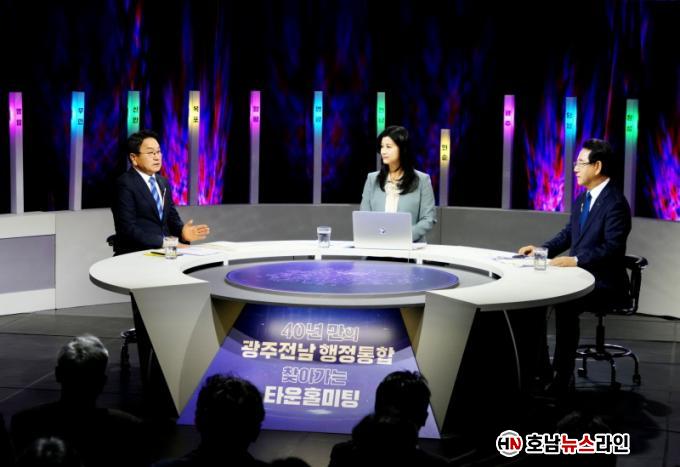 ±¤ÁÖ±¤¿ª½Ã(½ÃÀå °±âÁ¤)¿Í Àü¶ó³²µµ(Áö»ç ±è¿µ·Ï)´Â 10ÀÏ ±¤ÁÖMBC °ø°³È¦¿¡¼ ½Ã¡¤µµ¹Î 150¿©¸íÀÌ Âü¼®ÇÑ °¡¿îµ¥ ¡®±¤ÁÖ¡¤Àü³² ÇàÁ¤ÅëÇÕ ±¤ÁÖ±Ç Å¸¿îȦ¹ÌÆÃ¡¯À» ¿°í °ø°³ Åä·ÐÀ» ÁøÇàÇß´Ù.