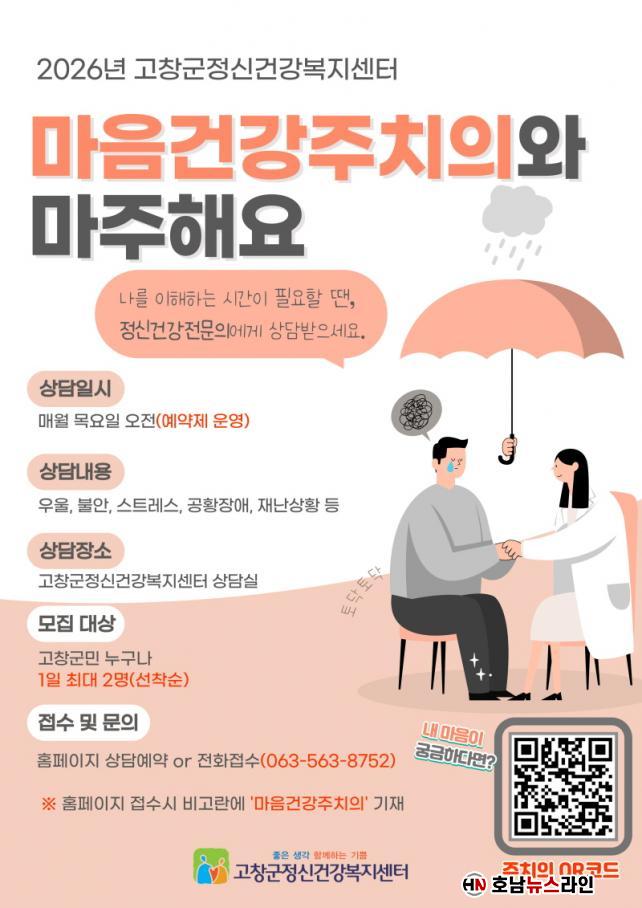 ÇØ´ç »ç¾÷Àº Á¤½Å°Ç°º¹Áö¼¾ÅÍ ³»¼Ò »ó´ã°ú ã¾Æ°¡´Â ¹æ¹®»ó´ã ÇüÅ·Π°ÝÁÖ ¿î¿µµÈ´Ù. ½ÅûÀº Á¤½Å°Ç°º¹Áö¼¾ÅÍ È¨ÆäÀÌÁö ¶Ç´Â Àüȸ¦ ÅëÇØ °¡´ÉÇÏ´Ù. ¿ì¿ï°¨À̳ª ½É¸®Àû ¾î·Á¿òÀ» °Þ°í ÀÖ´Â Áö¿ªÁÖ¹ÎÀ̶ó¸é ´©±¸³ª ¹«·á·Î ÀÌ¿ëÇÒ ¼ö ÀÖ´Ù.