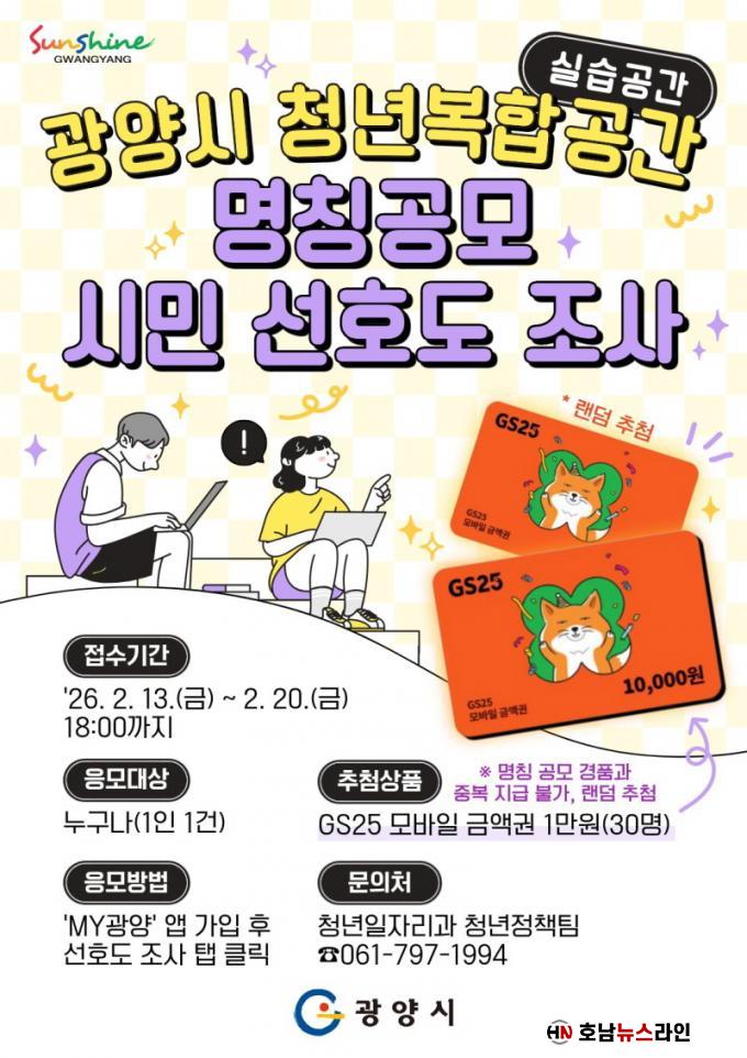 ±¤¾ç½Ã °ü°èÀÚ´Â ¡°Ã»³âº¹ÇÕ°ø°£ ¸íĪ °ø¸ðÀü¿¡ ¸¹Àº °ü½ÉÀ» °¡Á®Áּż °¨»çµå¸°´Ù¡±¸ç ¡°½Ã¹Î ÀǰßÀÌ ¹Ý¿µµÈ »ó¡ÀûÀÎ ¸íĪÀÌ ¼±Á¤µÉ ¼ö ÀÖµµ·Ï ¼±È£µµ Á¶»ç¿¡µµ ¸¹Àº °ü½É°ú Âü¿© ºÎʵ台´Ù¡±°í ¸»Çß´Ù.