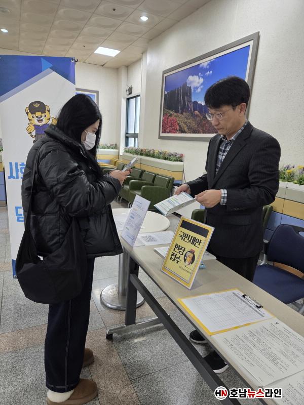 Âü¿© ¹æ¹ýÀº ±¤ÁÖÀü³²Áö¹æº´¹«Ã» ¹æ¹®(ÇöÀå) ¶Ç´Â ¿ìÆí°ú ÆÑ½º·Î Á¦Ãâ °¡´ÉÇϸç, ±¹¹Î½Å¹®°í ´©¸®Áý(www.epeople.go.kr)°ú º´¹«Ã» ´©¸®Áý(www.mma.go.kr) ±¹¹ÎÂü¿©¸¶´çÀ» ÅëÇØ¼µµ ½ÅûÇÒ ¼ö ÀÖ´Ù.