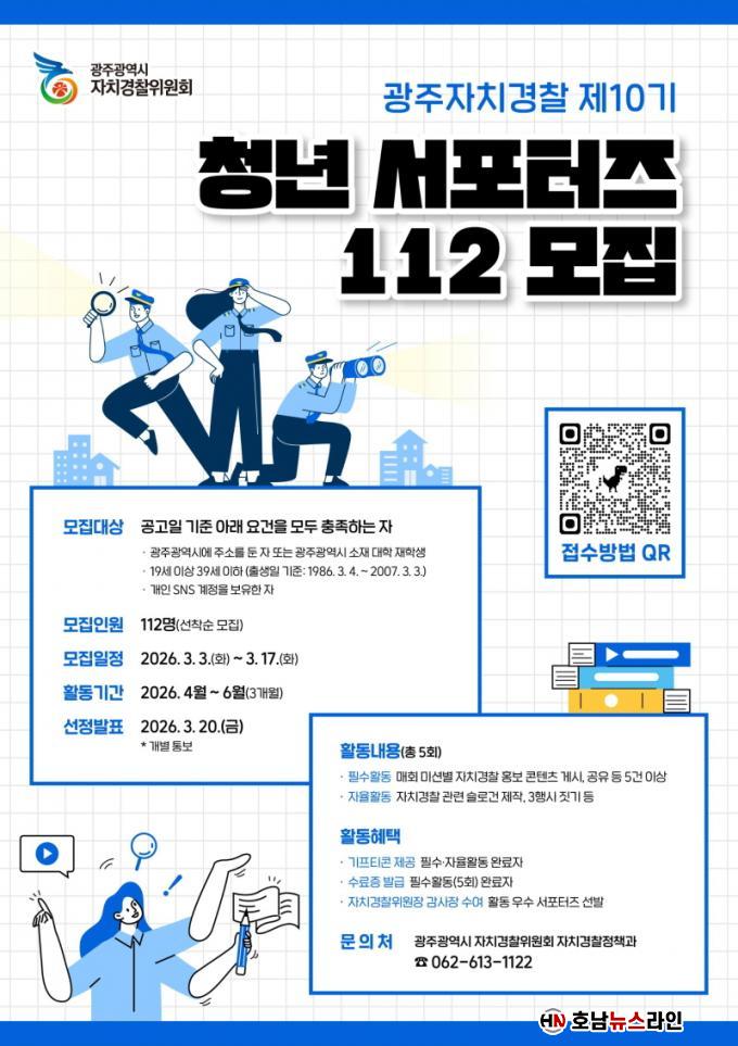 ¡®Ã»³â ¼Æ÷ÅÍÁî 112¡¯´Â ±¤ÁÖÀÚÄ¡°æÂûÀ§¿øÈ¸°¡ 2021³â Àü±¹ ÃÖÃÊ·Î µµÀÔÇÑ Ã»³â Âü¿© ÇÁ·Î±×·¥À¸·Î, û³âµéÀÌ »çȸ°ü°è¸Á¼ºñ½º(SNS)¸¦ Ȱ¿ëÇØ ÀÚÄ¡°æÂûÀÇ ÁÖ¿ä ½ÃÃ¥°ú Á¤Ã¥À» È«º¸Çϰí, ½Ã¹Î°úÀÇ ¼ÒÅëⱸ ¿ªÇÒÀ» ¼öÇàÇÑ´Ù.