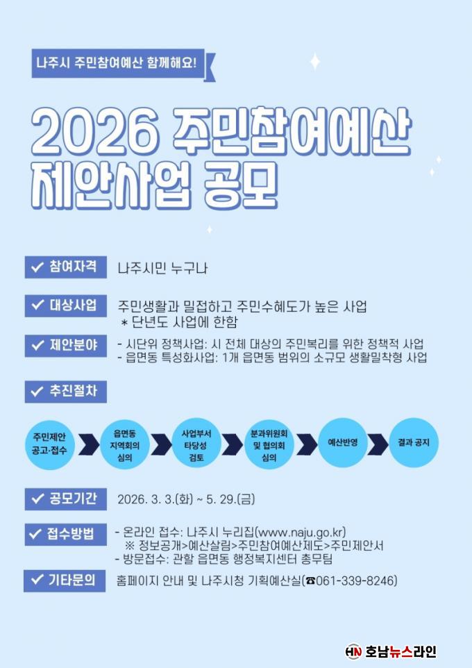 ÁÖ¹ÎÂü¿©¿¹»ê ±Ô¸ð´Â ÃÑ 30¾ï ¿ø À̳»´Ù. °ø¸ð ´ë»óÀº ½Ã¹Î ÆíÀÍ ÁõÁø°ú Áö¿ª °³¹ß¿¡ ÇÊ¿äÇÑ ½Ã Á¤Ã¥»ç¾÷°ú À¾¸éµ¿º° Ư¼ºÈ »ç¾÷À¸·Î ³ªÁÖ ½Ã¹Î°ú Áö¿ª ´Üü µî ³ªÁֽà »ýȰ±ÇÀÚ¶ó¸é ´©±¸³ª ÀÚÀ¯·Ó°Ô Âü¿©ÇÒ ¼ö ÀÖ´Ù.