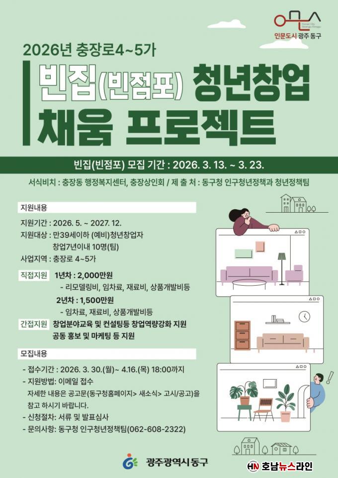µ¿±¸´Â ÀÌ·¯ÇÑ Á¤Ã¥ÀÇ ÀÏȯÀ¸·Î ÃæÀå·Î 4¡¤5°¡ ÀÏ´ë ºó Á¡Æ÷¸¦ Ȱ¿ëÇÑ ¡®2026³â ºóÁý û³ââ¾÷ ä¿ò ÇÁ·ÎÁ§Æ®¡¯¸¦ º»°Ý ÃßÁøÇÑ´Ù. À̹ø »ç¾÷Àº À¯ÈÞ Á¡Æ÷¸¦ û³â â¾÷°ø°£À¸·Î Àç»ýÇØ Áö¿ª »ó±Ç¿¡ Ȱ·ÂÀ» ºÒ¾î³Ö°í, û³âµé¿¡°Ô´Â ¾ÈÁ¤ÀûÀΠâ¾÷ ±â¹ÝÀ» Á¦°øÇÏ´Â °ÍÀ» ¸ñÇ¥·Î ÇÑ´Ù.
