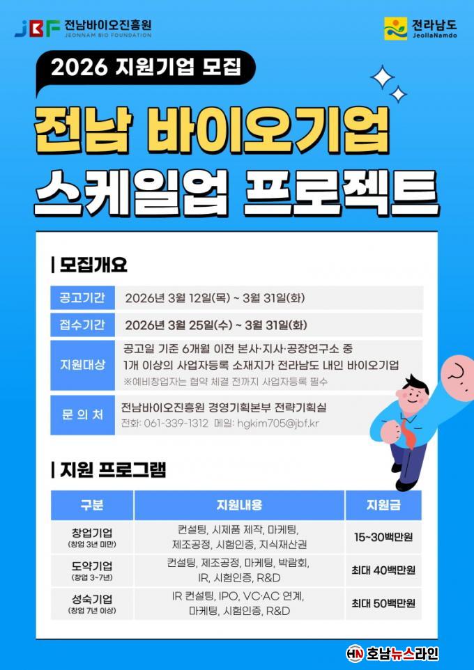 Àü³²µµ°¡ Áö¿øÇϰí Àü³²¹ÙÀÌ¿ÀÁøÈï¿øÀÌ ÁÖ°üÇÏ´Â À̹ø »ç¾÷Àº ¹ÙÀÌ¿À±â¾÷ â¾÷ºÎÅÍ ¼ºÀå±â¾÷ÀÇ ±Û·Î¹ú ÁøÃâ, ¼º¼÷±â¾÷ÀÇ »óÀå(IPO)±îÁö ¼ºÀå ´Ü°èº° ¸ÂÃã Áö¿øÀ» ÅëÇØ ¹ÙÀÌ¿À±â¾÷ÀÇ ½ºÄÉÀϾ÷À» ÃËÁøÇϱâ À§ÇØ ¸¶·ÃµÆ´Ù.