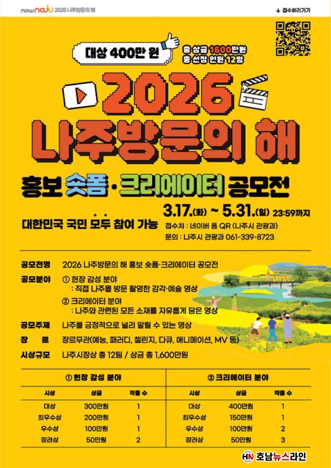 ³ªÁֽô ¿À´Â 5¿ù 31ÀϱîÁö ³ªÁÖÀÇ ´Ù¾çÇÑ ¸Å·ÂÀ» ¿µ»óÀ¸·Î ´ã¾Æ³¾ ¡®2026 ³ªÁÖ ¹æ¹®ÀÇ ÇØ È«º¸ ¼ôÆû Å©¸®¿¡ÀÌÅÍ °ø¸ðÀü¡¯À» °³ÃÖÇÑ´Ù°í 19ÀÏ ¹àÇû´Ù.