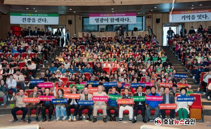 À̳¯ Âü°¡ÀÚµéÀº¡®°È±â·Î ±â¾ïÀ» ÁöÄÑÁ࡯, ¡®°É¾î¼ ¿µ±¤¼ÓÀ¸·Î¡¯¶ó´Â ¸Þ½ÃÁö¸¦ ÇÔ²² ¿Ï¼ºÇϸç Ä¡¸Å ¿¹¹æ°ú °Ç°ÇÑ »ýȰ ½Çõ¿¡ ´ëÇÑ °ø°¨´ë¸¦ Çü¼ºÇß´Ù. ÀÌ¾î ±º¼ö´ÔÀÇ ÈûÂù Ãâ¹ß ±¸È£¿Í ÇÔ²² ±º¹ÎµéÀº º½±â¿îÀÌ ¿Ï¿¬ÇÑ ¿µ±¤ÀÇ ±æÀ» ÇÔ²² °ÉÀ¸¸ç °Ç°ÇÑ ÀÏ»óÀ» ´ÙÁüÇß´Ù.