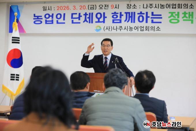 ½Å È帴 À̳¯ ¿ÀÀü ³ªÁÖ ³ó¾î¾÷ȸÀǼҿ¡¼ ¿¸° ³ó¾÷ÀδÜü °£´ãȸ¿¡ Âü¼®ÇØ Áö¿ª ³ó¾÷ Çö¾È°ú ³óÃÌÀÌ °Þ°í ÀÖ´Â ¾î·Á¿ò¿¡ ´ëÇÑ ÀǰßÀ» µé¾ú´Ù. ÀÌ ÀÚ¸®¿¡¼´Â ³ó¾÷ ±â¹Ý À¯Áö¿Í ³óÃÌ È°·Â ȸº¹, ÇöÀå ¾Ö·Î ÇØ¼Ò¸¦ À§ÇÑ ´Ù¾çÇÑ ¸ñ¼Ò¸®°¡ ¿À°¬´Ù.