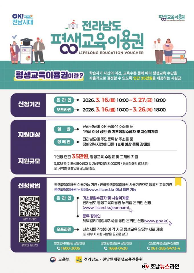 ÀÌ¿ë±Ç ½ÅûÀº Àü³²µµ Æò»ý±³À°ÀÌ¿ë±Ç ´©¸®Áý(www.lllcard.kr/jeonnam¡¤Àú¼ÒµæÃþ ´ë»ó)°ú º¸Á¶±Ý24(www.gov.kr¡¤µî·ÏÀå¾ÖÀÎ ´ë»ó), °¢ ½Ã±º Æò»ý±³À° ´ã´ç ºÎ¼¿¡¼ ÇÒ ¼ö ÀÖ´Ù.
