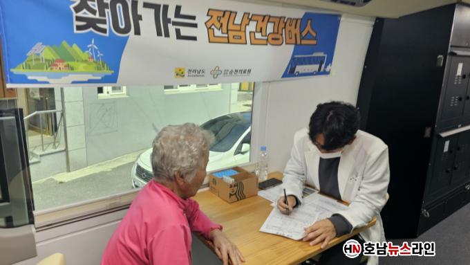À̳¯ ÇöÀå¿¡´Â ¼øÃµÀÇ·á¿ø°ú °î¼º±ºº¸°ÇÀÇ·á¿ø ¼Ò¼Ó °øÁߺ¸°ÇÀÇ»ç µî ÀÇ·áÁø 9¸íÀÌ Âü¿©Çß´Ù. ÀÇ·áÁøÀº Ç÷¾Ð¡¤Ç÷´ç ÃøÁ¤À» ºñ·ÔÇØ °ñ¹Ðµµ, üÁö¹æ °Ë»ç µîÀ» ½Ç½ÃÇϰí, °Ë»ç °á°ú¸¦ ¹ÙÅÁÀ¸·Î Àǰú Áø·á¸¦ ÁøÇàÇß´Ù. ¶ÇÇÑ ±¸°Áø·á¿Í ÇÔ²² ħ, ¶ä, ¿Â¿Ä¡·á µî ÇѹæÁø·áµµ º´ÇàÇØ ÁֹεéÀÌ ´Ù¾çÇÑ ÀǷἺñ½º¸¦ ÇÑÀÚ¸®¿¡¼ ¹ÞÀ» ¼ö ÀÖµµ·Ï Çß´Ù.