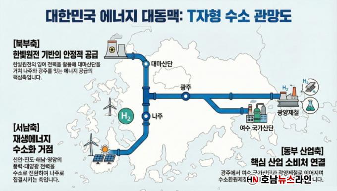 ¼ö¼Ò ÀÎÇÁ¶ó´Â Àü³²¡¤±¤ÁÖ¸¦ Áß½ÉÀ¸·Î ÇÑ TÀÚÇü ÆÄÀÌÇÁ¶óÀÎÀ¸·Î ±¸ÃàµÈ´Ù. ºÏºÎÃàÀº ÇѺû¿øÀü¿¡¼ ³ªÁÖ¡¤±¤ÁÖ·Î À̾îÁö´Â ¾ÈÁ¤Àû °ø±ÞÃà, ¼³²ÃàÀº ½Å¾È¡¤Çس²¡¤¿µ¾Ï¡¤Áøµµ µî Àç»ý¿¡³ÊÁö °ÅÁ¡À» ¿¬°áÇÏ´Â Áý°áÃà, µ¿ºÎÃàÀº ±¤ÁÖ¿¡¼ ¿©¼ö»ê´Ü°ú ±¤¾çÁ¦Ã¶·Î À̾îÁö´Â »ê¾÷ Ȱ¿ëÃàÀ¸·Î ±¸¼ºµÈ´Ù.