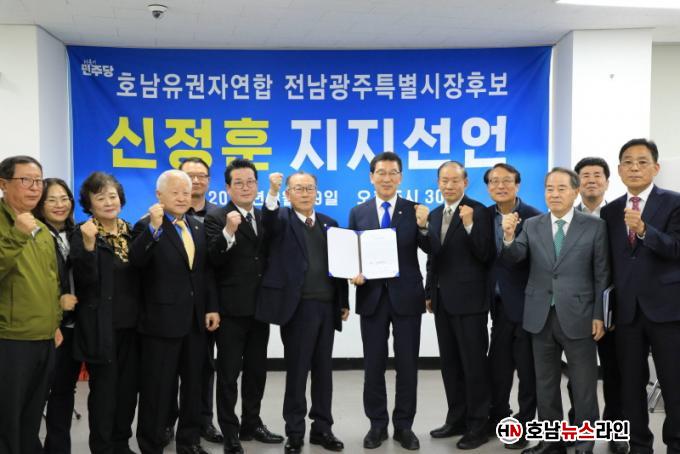 È£³²À¯±ÇÀÚ¿¬ÇÕ(»óÀÓ´ëÇ¥ À̰üÇü)Àº 29ÀÏ ½ÅÁ¤ÈÆ °æ¼±Áغñ ±¤Áֻ繫½Ç¿¡¼ ¡®Àü³²±¤ÁÖÅëÇÕÆ¯º°½ÃÀå Èĺ¸ ÁöÁö ¼±¾ð½Ä¡¯À» °®°í, ÃÊ´ë ÅëÇÕÆ¯º°½ÃÀå È帷Π½ÅÁ¤ÈÆÀ» ÁöÁöÇÑ´Ù°í ¼±¾ðÇß´Ù.