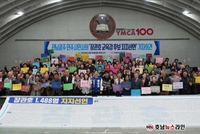 ¡®Àü³²±¤ÁÖ ¹ÎÁֽùλçȸ Àå°üÈ£ Èĺ¸ ÁöÁö ÃßÁøÀ§¿øÈ¸(ÀÌÇÏ ÃßÁøÀ§)¡¯´Â 3¿ù 30ÀÏ(¿ù) ¿ÀÈÄ 2½Ã ±¤ÁÖ YMCA ¹«Áø°ü¿¡¼ ±âÀÚȸ°ßÀ» ¿°í, ½Ã¹Î 1,488¸íÀÌ µ¿ÂüÇÑ ÁöÁö ¼±¾ð¹®À» ¹ßÇ¥Çß´Ù. À̹ø ¼±¾ðÀº Áö³ 19ÀÏ ¹ÎÁÖÁøº¸±³À°°¨ Àü³²µµ¹Î°øÃµÀ§¿øÈ¸ÀÇ Ãß´ë °áÁ¤ ÀÌÈÄ, Àü³²¡¤±¤ÁÖ ÅëÇÕ±³À° ½Ã´ë¸¦ ÁغñÇÏ´Â ½Ã¹Î»çȸÀÇ °·ÂÇÑ ÀÇÁö¸¦ °áÁýÇÑ °ÍÀÌ´Ù.