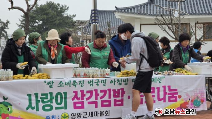 À̳¯ Çà»ç´Â À̸¥ »õº®ºÎÅÍ ÁغñµÆ´Ù. »õ¸¶À»È¸ ȸ¿øµéÀº ¿ÀÀü 4½ÃºÎÅÍ Á÷Á¢ »ï°¢±è¹äÀ» ¸¸µé°í Æ÷ÀåÇϸç ÇлýµéÀ» ¸ÂÀÌÇÒ Áغñ¸¦ ¸¶ÃÆ´Ù. ÁغñµÈ »ï°¢±è¹ä°ú À½·á´Â µî±³ÇÏ´Â Çлý°ú ±³Á÷¿ø 500¸í¿¡°Ô Àü´ÞµÇ¸ç µû¶æÇÑ ÀÀ¿øÀÇ ¸¶À½À» ÀüÇß´Ù. ¿©±â¿¡ ¹Ù³ª³ª¸¦ ´õÇÑ ¾ÆÄ§ ²Ù·¯¹Ì·Î dz¼ºÇÔÀ» ´õÇß´Ù.