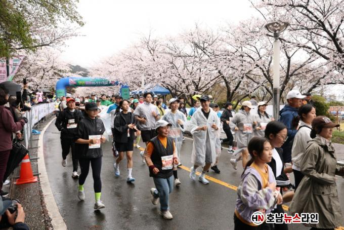 ÃàÁ¦ÀÇ ½ÃÀÛÀº Àü±¹ 3,500¿© ¸íÀÌ Âü°¡ÇÑ º¢²É¸¶¶óÅæ´ëȸ¿´´Ù. Âü°¡ÀÚµéÀº È𳯸®´Â º¢²É±æÀ» µû¶ó ´Þ¸®¸ç ¿µ¾ÏÀÇ º½À» ¿Â¸öÀ¸·Î ´À²¼°í, Çà»çÀåÀº °¡Á· ´ÜÀ§ °ü±¤°´°ú ¹æ¹®°´µé·Î Ȱ±â¸¦ ´õÇß´Ù.