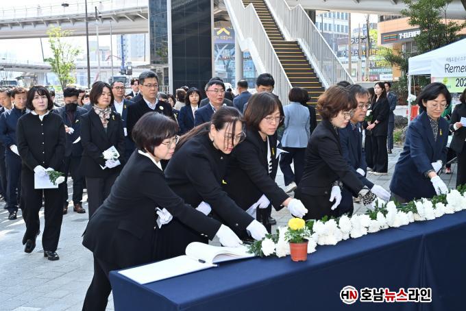 ±¸Ã» °øÁ÷ÀÚ¿Í ÁֹεéÀÌ ÇÔ²²ÇÏ´Â Âü¿©Çü Çà»ç·Î, ³ë¶õ ¸®º»¿¡ °¢ÀÚ°¡ »ý°¢ÇÏ´Â ¼¼¿ùÈ£ÀÇ ±â¾ï°ú ¾ÈÀü»çȸ ±¸ÇöÀ» ´ÙÁüÇÏ´Â ¾à¼ÓÀ» ÀûÀº µÚ Ä¿´Ù¶õ ³ª¹« Ⱥп¡ ¸Å´Þ¸é¼ Ã߸ðÀÇ ¸¶À½À» ¸ðÀ¸´Â ½Ã°£À» °®´Â´Ù.
