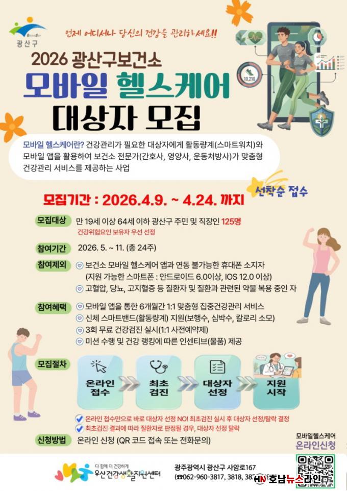 Áö¿ø ´ë»óÀº Ç÷¾Ð, Ç÷´ç, Ç㸮µÑ·¹ µî °Ç° À§Çè ¿äÀÎÀ» °¡Áö°í ÀÖ´Â ¸¸ 19¼¼ ÀÌ»ó 64¼¼ ÀÌÇÏ ±¤»ê±¸ ÁÖ¹Î, Á÷ÀåÀÎÀÌ´Ù. ¼±Á¤µÈ ´ë»óÀÚ¿¡°Ô´Â ¹«·á °Ç°°ËÁø°ú ÃøÁ¤ °á°ú¿¡ µû¶ó ½º¸¶Æ® Ȱµ¿·®°è¸¦ Áö±ÞÇϰųª °³Àαâ±â¸¦ ¿¬µ¿ÇØ »ç¾÷¿¡ Âü¿©ÇÒ ¼ö ÀÖ´Ù.